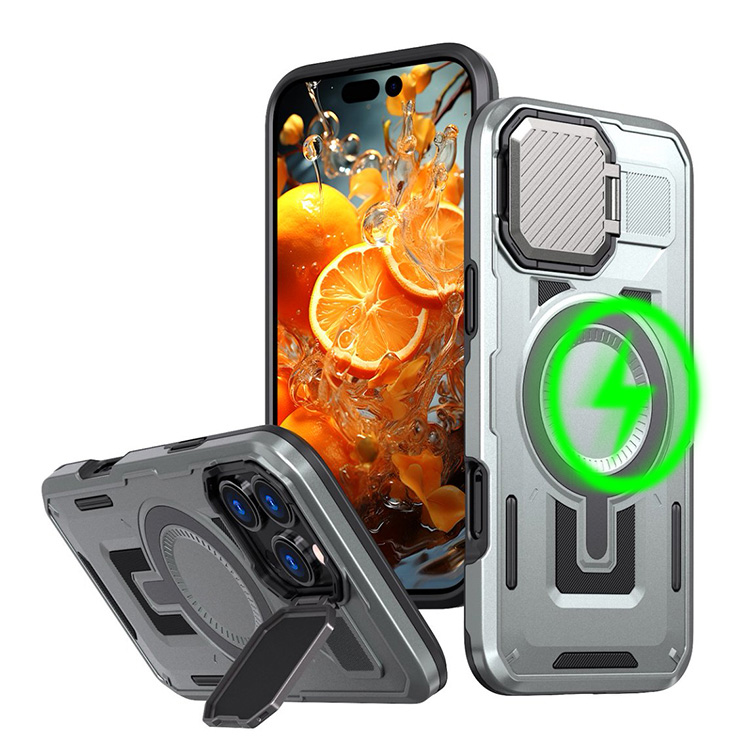 HOLLIS Casebus Heavy Duty Phone Case, Support Magsafe, with Built in Metal Lens Cover Stand, Military Grade Shockproof Protective Cover
