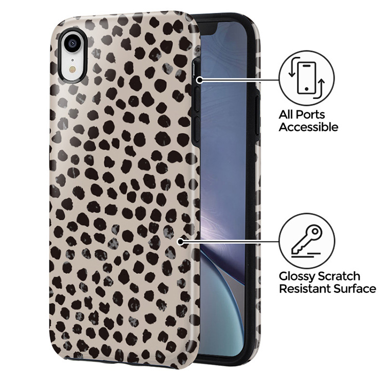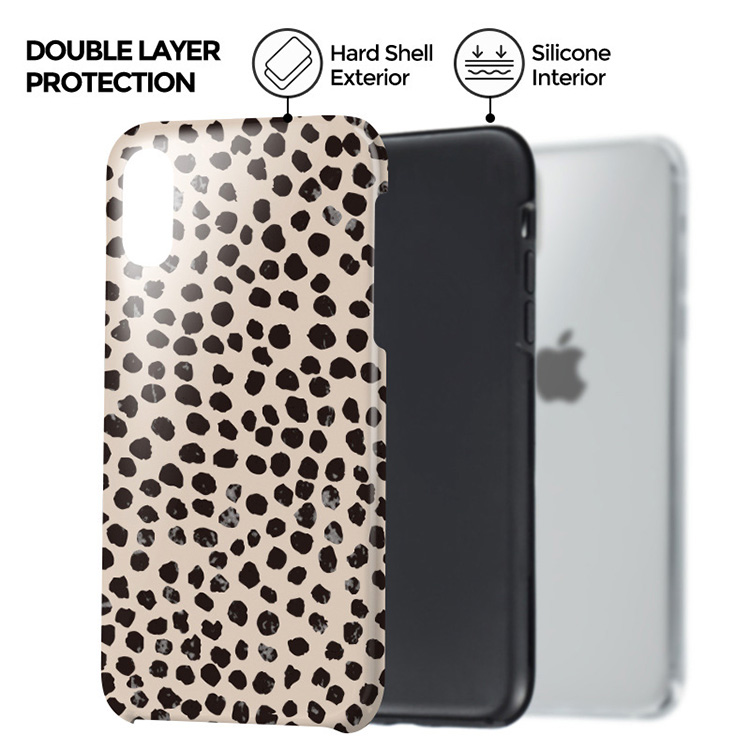 Cute cream color as a background for the unique pattern of asymmetrical black spots creates a real eye-catcher in our Almond Latte phone case. The spotted pattern adds a touch of luxury to your phone, while the case's hard-shell nature offers much-needed protection making it a popular choice between fashion lovers.
