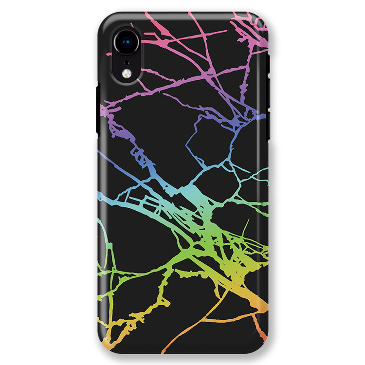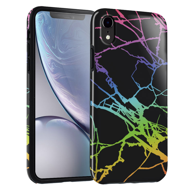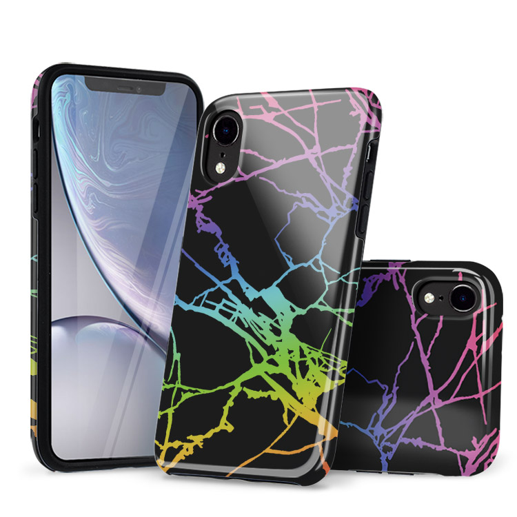 Protective black marble design phone case layered with holographic holo chrome cracks topped with a gloss finish. This design is perfect for a day at work or a night out with your glam girlies! Classy, bold, and stylish, this protective case for iPhones features a fun black marble design with holographic cracks, all topped with a gloss finish. It is great for a night out or a day at the office. This iPhone case has 1.2mm raised edges to provide phone and camera protection while remaining lightweight. In addition, it features flexible TPU sides, which are engineered to minimize impacts and absorb shock. For drops and tumbles, this case helps ensure superior phone protection. This case is specifically designed with customers in mind. A limited-edition case, this product can be ordered for many Apple iPhone products. In addition to flexibility when it comes to compatibility, it is also user-friendly as the case sits securely over the responsive embossed buttons.