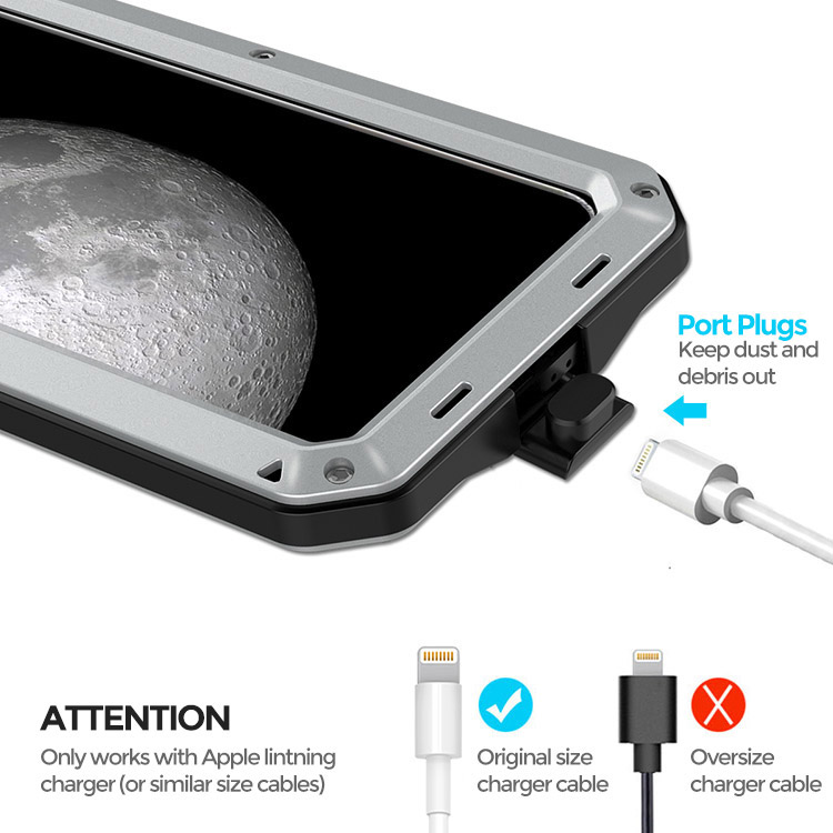 Front and Rear Cover Combined Design: (front and rear frame) alloy + (middle) silicone + (screen) tempered glass. 360°fully protected;