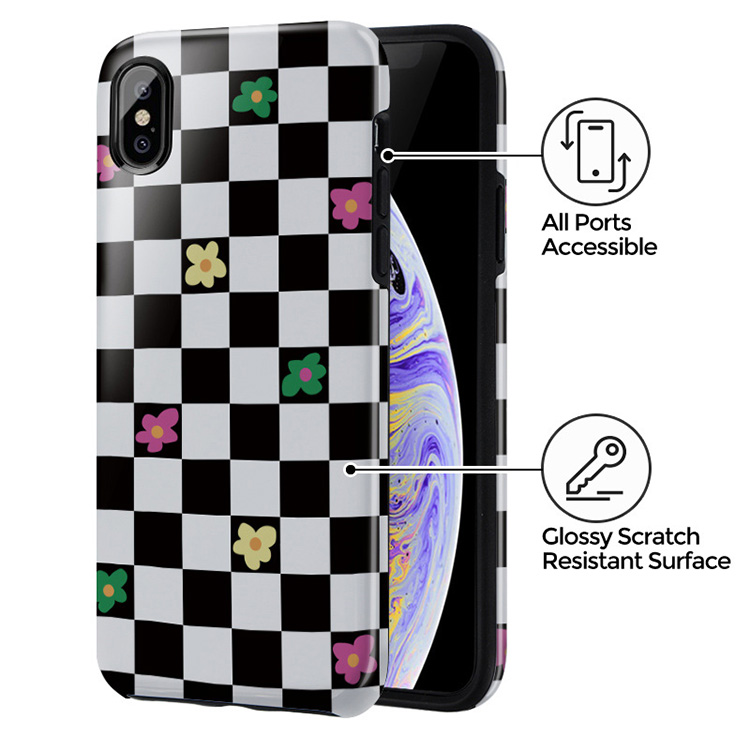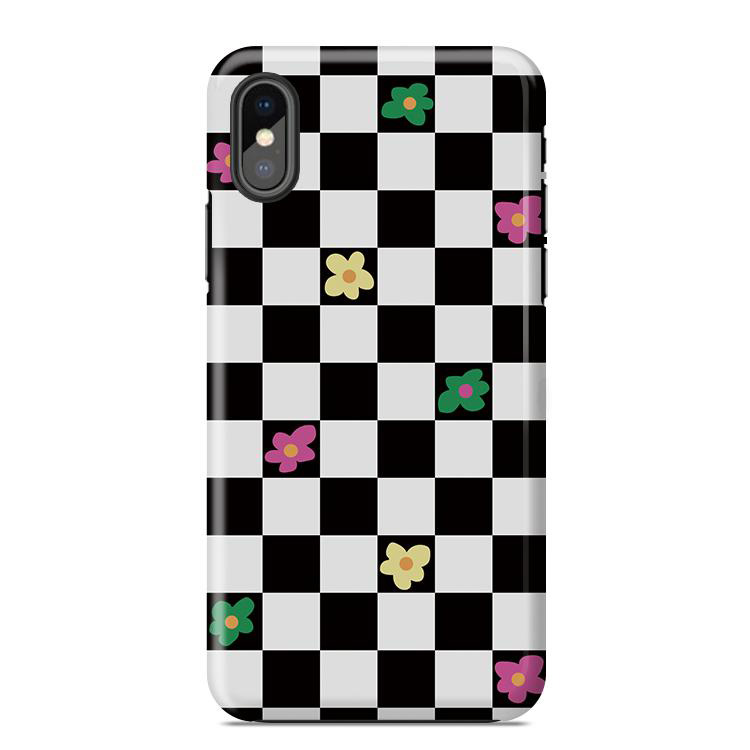 Take time to relax with our Lunch Break - phone case. The playful addition of colorful retro flowers to the classical black and white checkered pattern will add that extra pop of color. It will bring that much-needed *oomph* to your phone. With this playful design, you can keep your phone cute and protected!