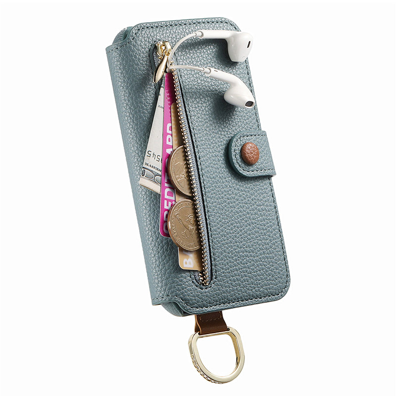 Casebus Custodia per telefono a tracolla classica, in pelle pregiata, porta carte di credito, borsa con tasca a cerniera, custodia antiurto con supporto a calci
