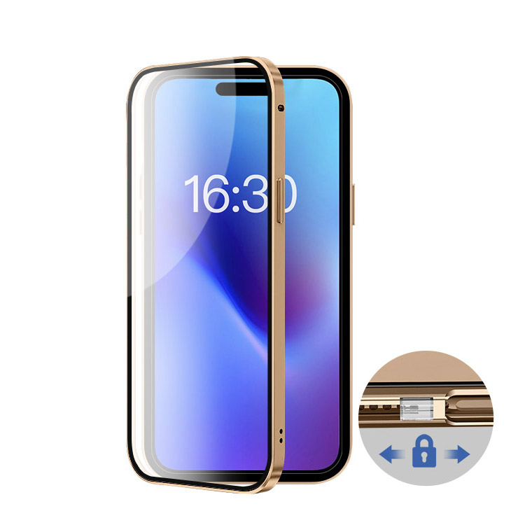 HAMLIN Casebus Double Sided HD Clear Phone Case with Safety Lock, Built in Screen Protector Metal Bumper Frame 360 Full Protective Cover